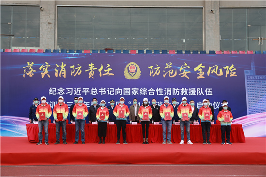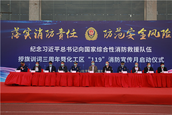 啟動儀式上,化工區管委會副主任余亮茹高度肯定了改革轉制三年來化工區消防救援隊伍創新發展取得的新成就。三年來,化工區消防救援支隊始終銘記訓詞精神,為園區安危枕戈待旦、赴湯蹈火,用實際行動踐行了“為維護人民群眾生命財產安全、維護社會穩定貢獻自己的一切”的錚錚誓言。