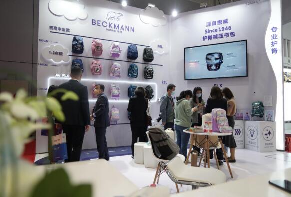 據悉,來自挪威的Beckmann貝克曼是全球專業護脊書包品牌之一,擁有75年歷史和專業經驗。雖因疫情原因,Beckmann創始人家族沒能到現場,但對此次進博首秀十分重視,全程參與了展臺設計、選品、活動等細節。Beckmann展出了自幼兒園、小學到初高中等全年齡段適用的多款書包,并配合身高匹配購買建議;有獎問答、試背體驗等互動環節讓消費者感受“減壓黑科技”書包的魅力。