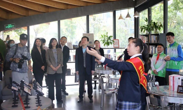 正逢進博會,在4號望江驛內,浦東新區紅領巾講解員為市民講解東岸濱江文化風貌和進博會熱門展品。