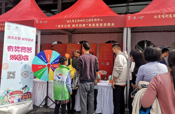 浦東新區新時代文明實踐中心則帶來了妙趣橫生的“浦東文明 城市創建”有獎競答游園會活動。市民群眾可以瀏覽文明展板,學習文明創城小知識,再通過轉盤互動游戲,回答文明創城問題,贏取文明伴手禮,在生動的游戲中進一步了解城市文明創建工作。(來源:浦東文明)
