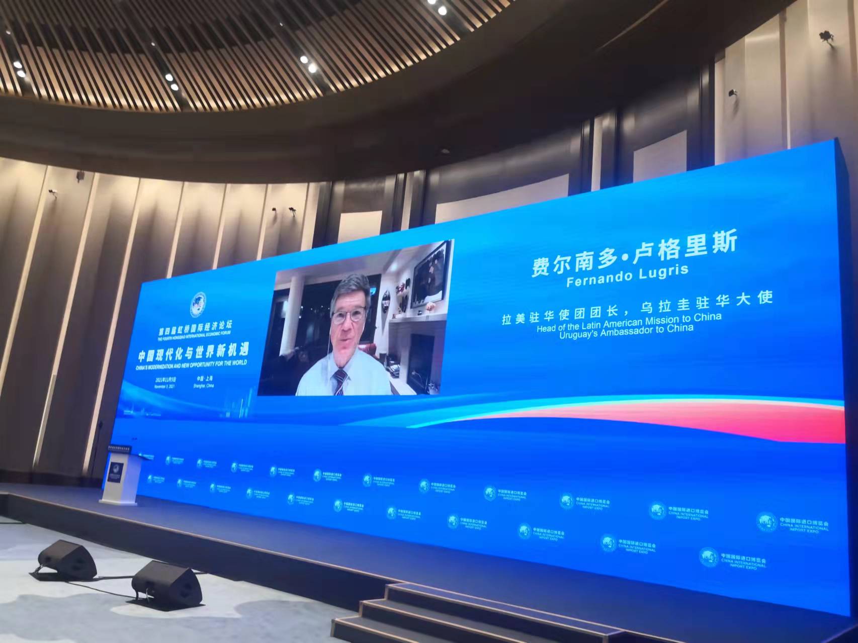 拉美駐華使團團長、烏拉圭駐華大使費爾南多?盧格里斯致辭稱,烏拉圭首都蒙得維的亞是和中國相距最遠的地方之一,卻因中國對外開放和經濟發展受益良多,特別在“一帶一路”倡議下,“我們正嘗試理解中國提出的國內國際雙循環,從中尋求合作共贏機遇!