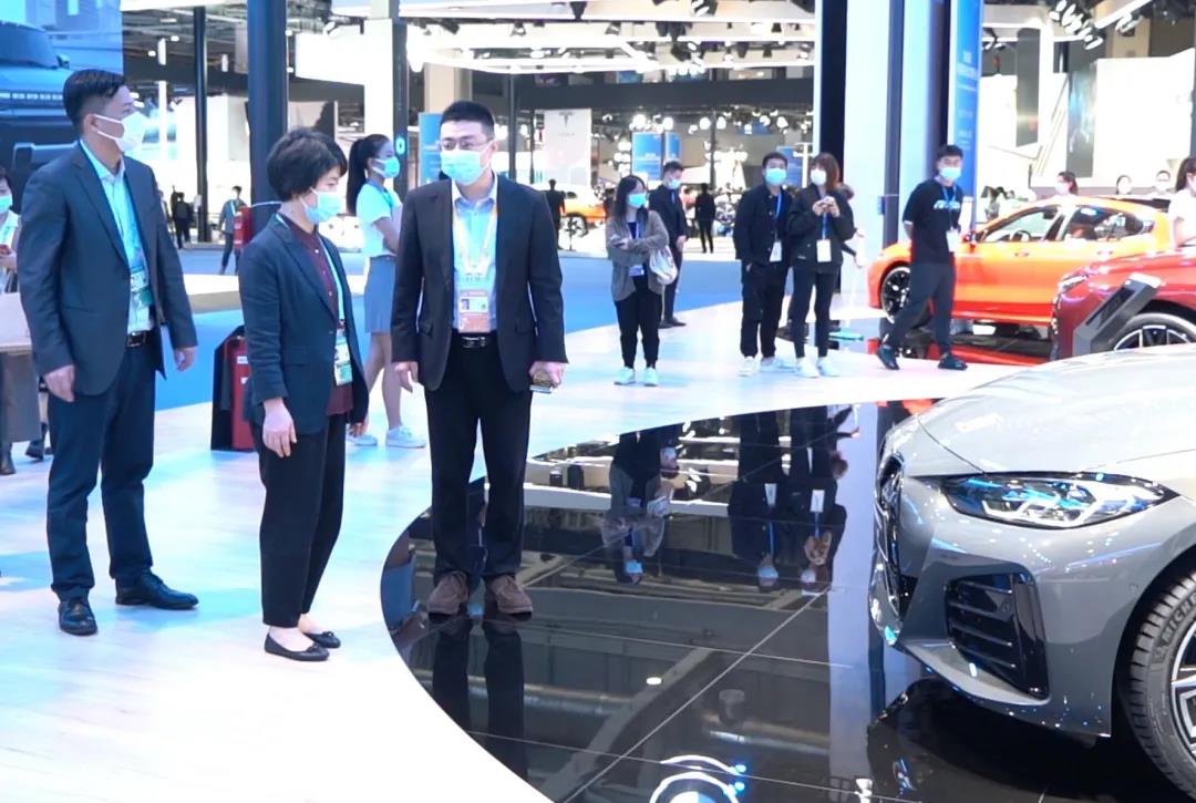 在進博會汽車展區,郭芳來到德國寶馬集團展位。作為專注創新前沿科技的國際知名汽車廠商,寶馬集團在北外灘成立了研發中心。作為連續四年參展的企業,寶馬這次帶來了六款車型,其中有一半是新能源車型,BMW iX將在今年年內上市,BMW i4也將很快登陸中國市場。預計到2025年,寶馬將進入電動化發展全新階段。郭芳詳細了解了企業參展車型及未來發展計劃,并指出要做好創新孵化,希望寶馬在中國市場積極推進減碳目標,助力區域智慧出行建設。