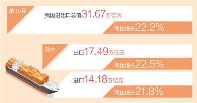 前10月我國進出口總值同比增22.2%(新數據 新看點)