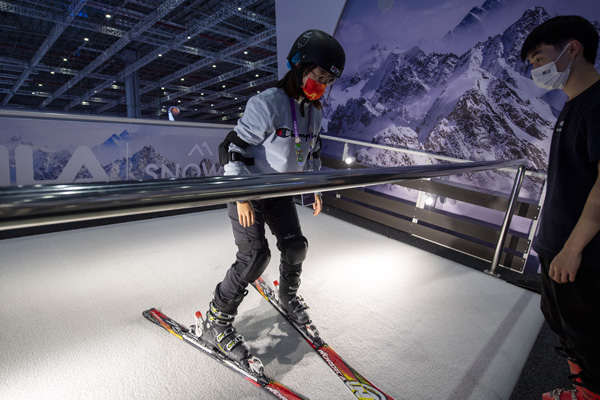 在消費品展區,參觀者正在體驗室內滑雪。人民網記者 翁奇羽攝