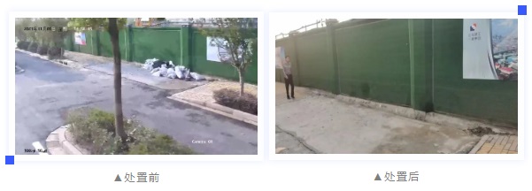 下午14:45,前線指揮中心接報,5G智能巡屏車在巡查過程中,發現蟠臻路蟠中路路口附件道路上存在暴露垃圾情況,請求協調處置。指揮中心立即通知一體化養護處置單位進行處置,半小時內,該處暴露垃圾問題處置完畢。