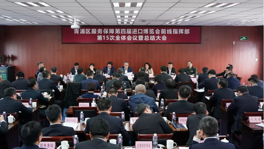 11月11日,青浦區服務保障第四屆進口博覽會前線指揮部第15次全體會議暨總結大會召開,區委書記徐建出席并講話,區委副書記、代理區長楊小菁主持會議,區人大常委會主任朱明福,區委副書記張權權,區領導孫挺、劉遼軍、王凌宇、顧駿、陳建國、葉靖、何強、趙宏林、倪向軍、姚少杰、陳匯青、肖輝、顧嘯流、饒斐文、徐英等出席。