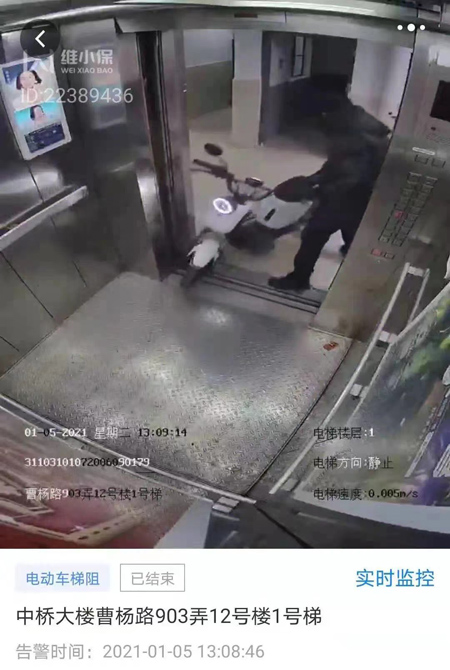 電動車入戶進樓充電,是不少住宅小區管理的難點之一,消防隱患大,且電梯危險系數高。為徹底杜絕這一現象,曹楊新村街道在星港景苑等21個小區、170個高層住宅樓內安裝“梯控系統”,并將其接入“一網統管”大數據管理平臺。一旦發生電動車進入電梯的情況,電梯里的梯控將立即發出警示,電梯門將無法關閉,“一網統管”也會同步收到預警,相關工作人員可實時從監控中查看該電梯的內部情況。