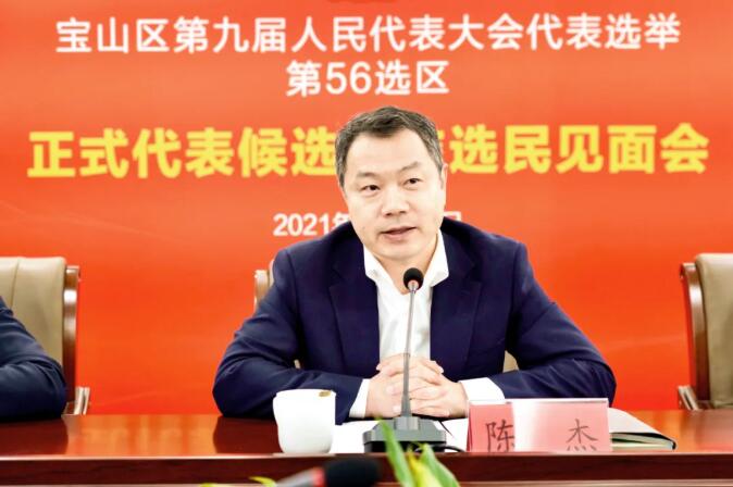 在寶山區第五十六選區選民見面會上,陳杰與其他三名候選人一起,向到場選民代表介紹了自己的個人經歷、工作情況并就當選后如何履行代表職責作表態發言。陳杰說,如果有幸當選人大代表,將時刻牢記人民代表為人民的宗旨,踐行人民至上的理念,深入基層一線調查研究,問計于民、問需于民,做執政為民的表率,解決好老百姓的急難愁盼,不辜負廣大選民的期望。