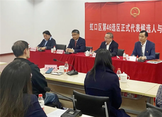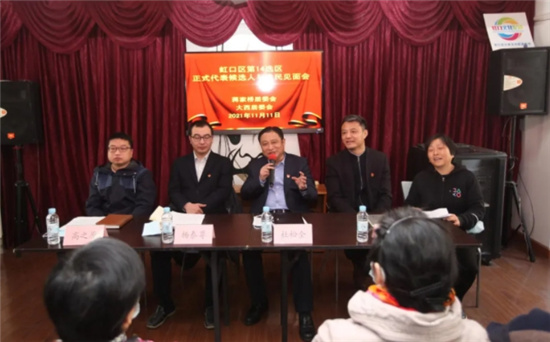 11月10日下午,胡廣杰作為虹口區第46選區正式代表候選人,來到曲陽路街道文化活動中心與選民見面。胡廣杰作了自我介紹和表態發言。