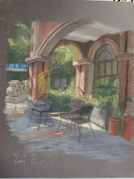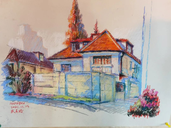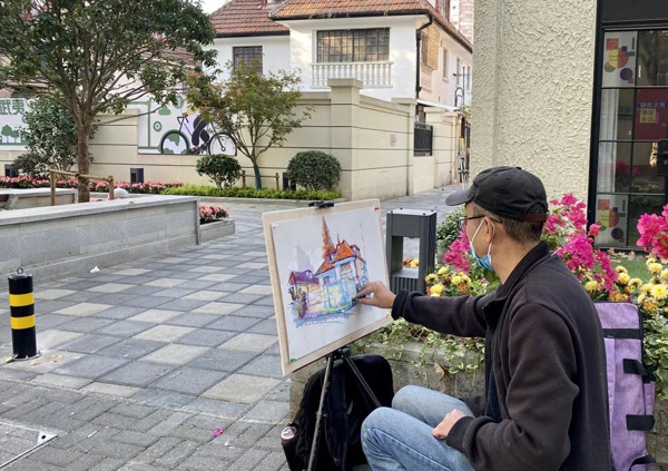 參加寫生活動的畫家大都是“70后”和“80后”的上海畫家,他們見證了上海的變化,也希望用自己的筆,描繪出這種美好的變化!拔也蛔≡陂L寧,小時候逛過武夷路,之后都是匆匆路過。今天的寫生活動我從早晨到下午,靜下心感受了一番武夷路。感覺這里既有歷史感、年代味,也有煙火氣和更新改造后的時尚感、新活力,是個讓人非常舒服的街區!眳⒓訉懮顒拥漠嫾尹S舒夷說。