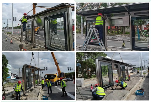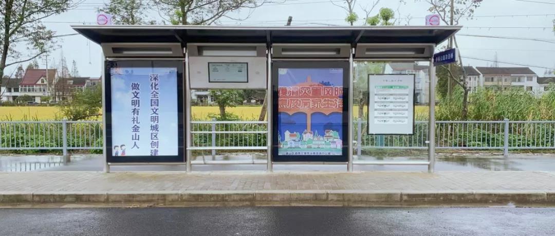 公交候車亭項目為G320公路(G60-金山大橋)改建工程公交基礎配套設施涉及四門式公交候車亭38座,同時配備32寸電子墨水屏38座,于今年8月30日正式開工,至10月28日竣工。