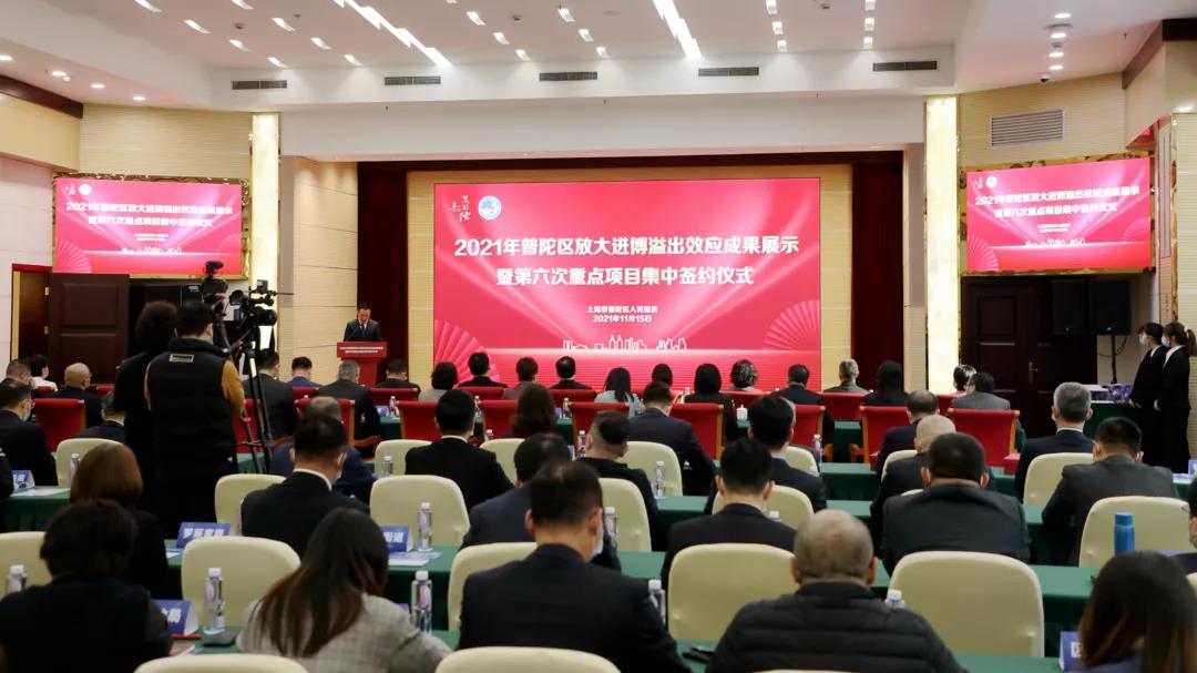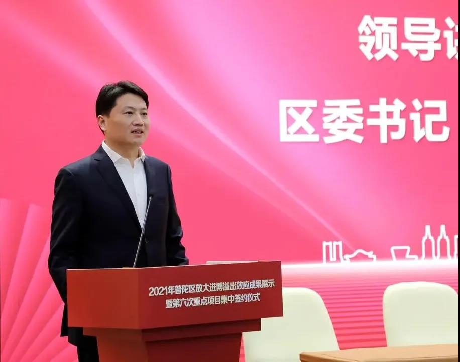 11月15日下午,2021年普陀區放大進博溢出效應成果展示暨第六次重點項目集中簽約儀式舉行。普陀區區委書記姜冬冬講話,區委副書記、代區長肖文高發布2021年度經濟貢獻新銳榜單,區人大常委會主任羅勇偉,區人大常委會黨組書記談上偉,區委副書記周艷出席,并共同見證18個重點項目集中簽約。區領導劉東昌、李紅珍、張偉、劉云宏、魏靜、高路、王玨、徐樹杰、蔣龍、歐陽萍出席。
