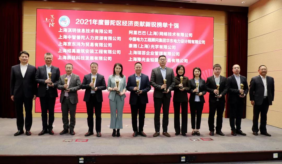 會上,姜冬冬、肖文高為2021年度經濟貢獻新銳榜單的十強企業頒獎。