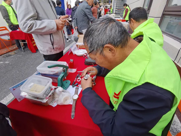 活動現場設有鐘表維修、小家電維修、口腔檢查、“守護記憶”健康咨詢、長護險醫保政策法規咨詢等20余項居民喜聞樂見的便民服務。其中,磨刀、理發、修鞋等生活服務類項目最受歡迎!凹舻垛g了,但扔了可惜,現在一打磨,就跟全新的一樣,鋒利了很多!蹦弥恋募舻,呂阿姨開心地說道。