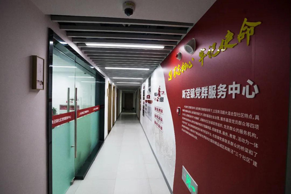 新涇鎮公共服務綜合樓位于哈密路1358號,東靠西郊金融園,西臨中新涇公園,大樓占地面積近4000平方米,建筑面積上萬平方米。上下7層的空間布局了藝術展館、社區學校、圖書館、百姓健身房、教育培訓、社區創新屋等許多居民喜愛的公共活動空間近20個,365天全年開放,每天8:30~17:00為居民提供文化藝術展覽、教育培訓、體育健身、黨服聯絡及其他公共服務。