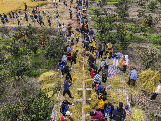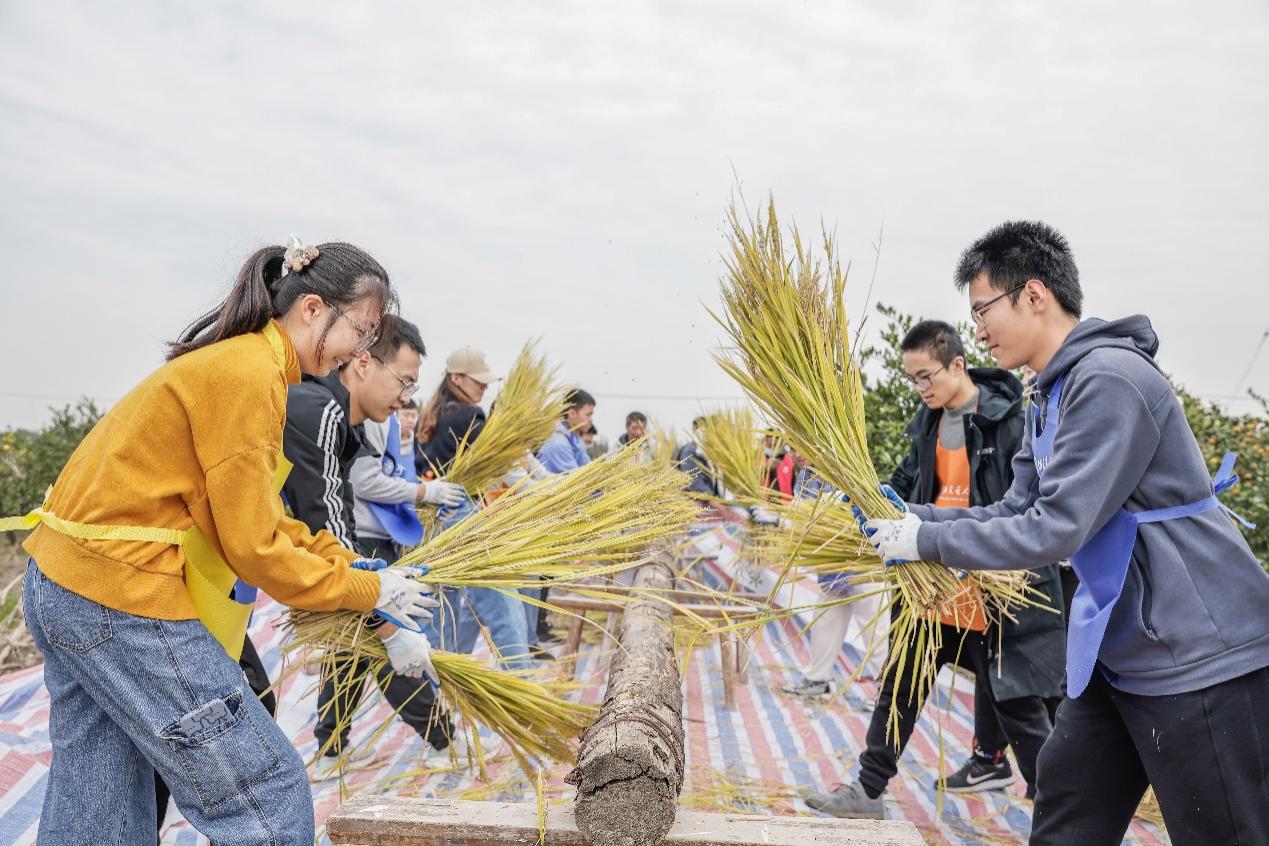 農業與生物學院2021級本科生徐彩霞這樣說道:“第一次收稻谷、打稻谷,對于一個北方孩子來說是一次非常新奇的體驗,最傳統的割稻、打稻方式讓我理解了南方秋收的喜悅,每一粒稻谷被打下的那一刻,腦海中便浮現出袁隆平爺爺欣慰的臉龐!卑蔡┙洕c管理學院2019級本科生高婕說:“這次社會實踐中,無論是收割稻谷還是在麥田中穿梭行走,都讓我們暫時脫離了學校學生的身份,真正把手放在大地之上,這不僅豐富了我的社會閱歷,更讓我切身感受到農業生產勞作的不易!保ㄉ虾=淮蠊﹫D)
