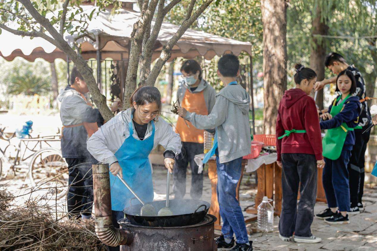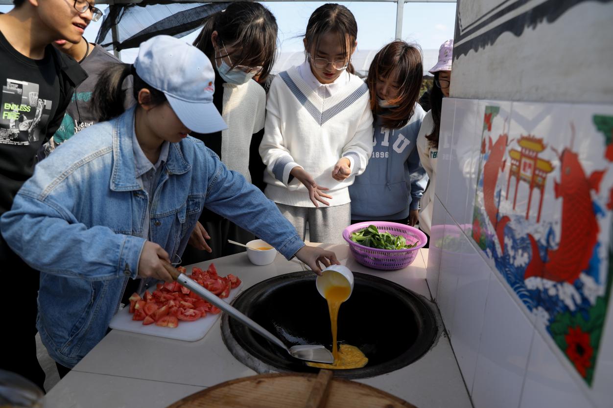 臨近午時,大家開始動手準備午餐?巢、生火、摘菜、洗菜、炒菜……生活中愛好廚藝的交大學子,面對農家土灶依然游刃有余,簡單的家常小菜也因這煙火氣息增添了別樣風味。有的則是就地取材,拾取干柴、挖土坑、烤紅薯,經過一個多小時的熏烤,香甜的烤紅薯新鮮出爐,一口咬下,滿嘴留香,樸素的食材與簡單的烹飪手法,產生了奇妙化學反應。還有的走進農戶家中,在村民的指導下動手包水餃,笨拙生澀的逐漸嫻熟起來。