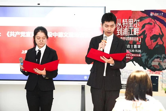 以學生展示環節為引子,在這堂精心打造的“追尋馬克思的足跡:從特里爾到浦江畔”課程思政示范課上,主講人既有校外專家學者、市委黨校教師,也有校內專任教師、輔導員,共同為同學們帶來一頓豐富的精神大餐。