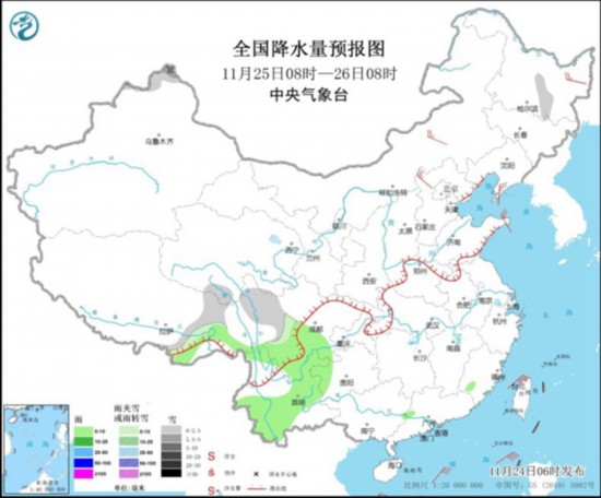明天,新疆北疆北部、西藏東部、青海南部、川西高原等地部分地區有小到中雪或雨夾雪,其中,新疆阿勒泰山區局地有大到暴雪。西藏東南部、四川南部、云南大部等地部分地區有小雨。
