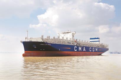 昨天,滬東中華在上海交付的“達飛·奧西里斯”號。 張黎 攝