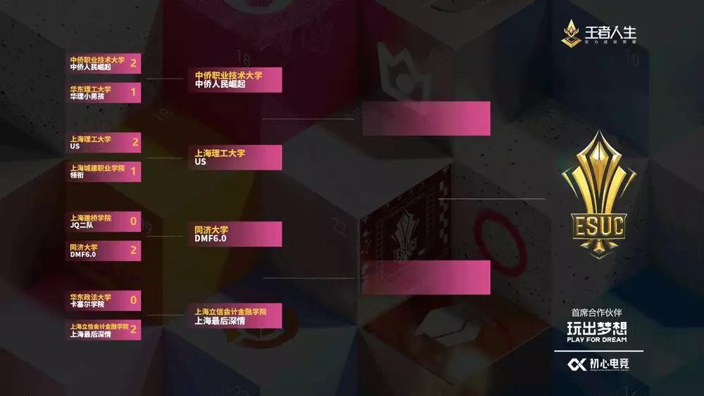 最終,中僑職業技術大學中僑人民崛起戰隊、上海理工大學US戰隊、同濟大學DMF6.0戰隊以及上海立信會計金融學院上海最后深情戰隊躋身本屆高校賽《王者榮耀》項目四強。