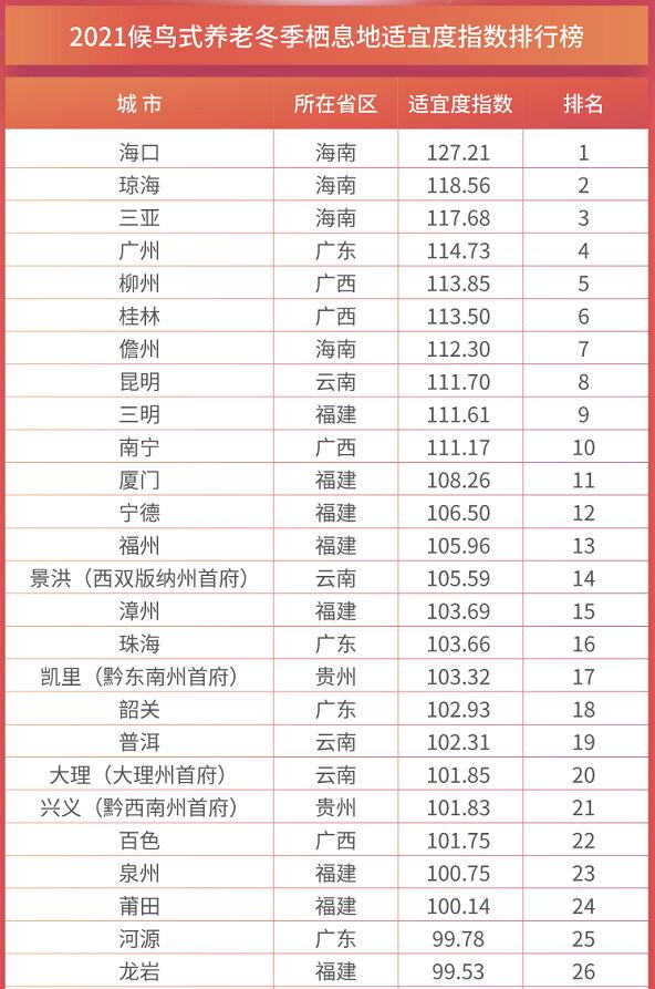 《2021中國候鳥式養老冬季棲息地適宜度指數》發布