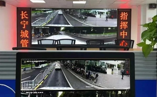 在不斷探索智慧城市管理新模式,推進全國文明城區創評工作中,一臺裝有全景智能識別車載視頻的執法車,助力長寧城管巡邏督察。