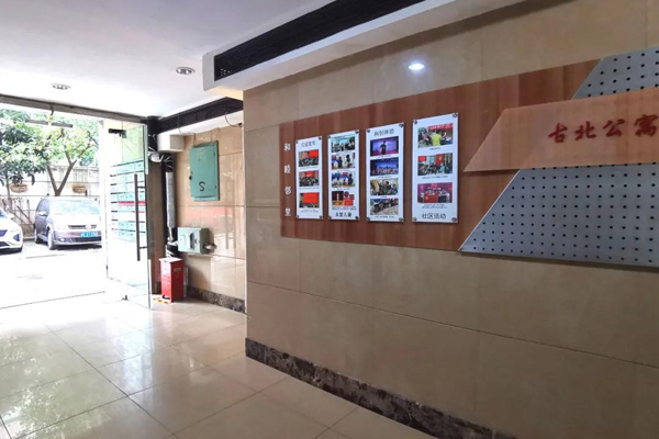 走進古北公寓A棟,門廳墻面上布置的公寓風采展示板就已顯示出鄰里間的溫馨和睦。