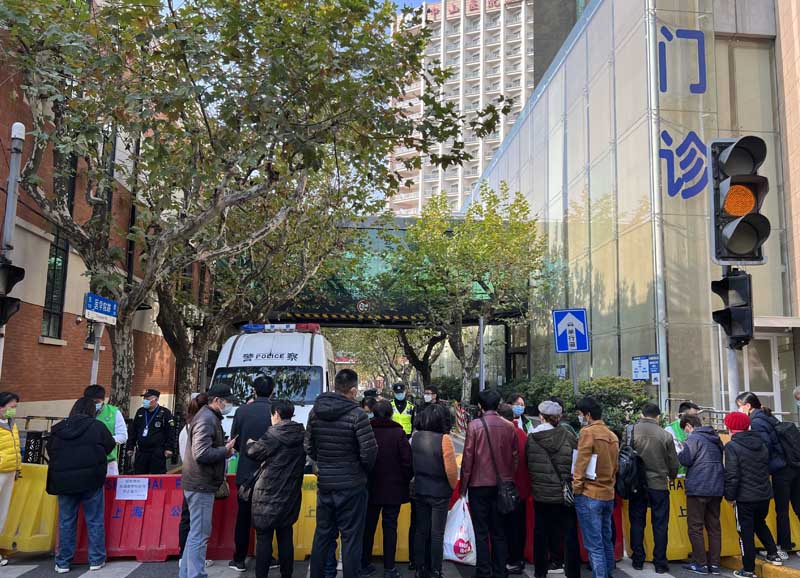 中山醫院門口,不少市民在焦急咨詢情況。人民網 王文娟攝