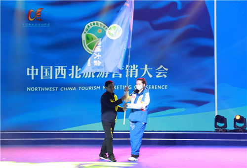 (線上線下)青海與新疆輪值交接授旗。劉新海攝