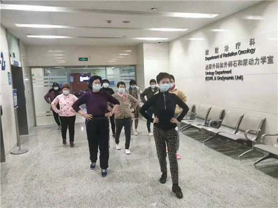 25日晚,瑞金醫院門診放療科滯留的病人一起跳起了健身操