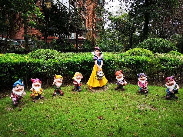 同時,居委和物業還在小區的大草坪、綠化帶等地新增了七個小矮人、小黃人等卡通形象綠地小品,為隔離石墩“穿上”卡通外衣,創意的設計將小區打造成了一個童話王國,萌翻了來往的居民,總能吸引孩子們前來打卡。