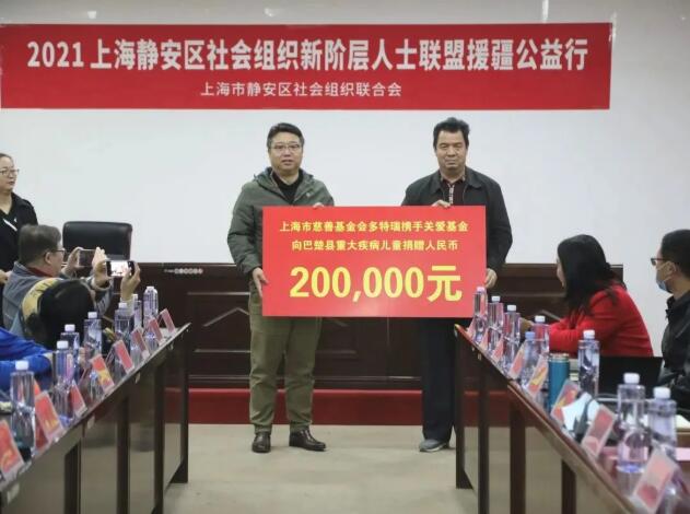2020年,在上海援疆巴楚分指的牽頭和靜安區社會組織聯合會的協調下,上海市慈善基金會(多特瑞攜手關愛基金)貧困兒童血液病、腫瘤資助項目在巴楚正式實施。同年,多特瑞(上海)商貿有限公司捐助50萬現金為巴楚縣患重大疾病兒童提供生活補助。今年,多特瑞再次來到巴楚縣,捐贈20萬元慈善資金用于患有重大疾病兒童的診療。