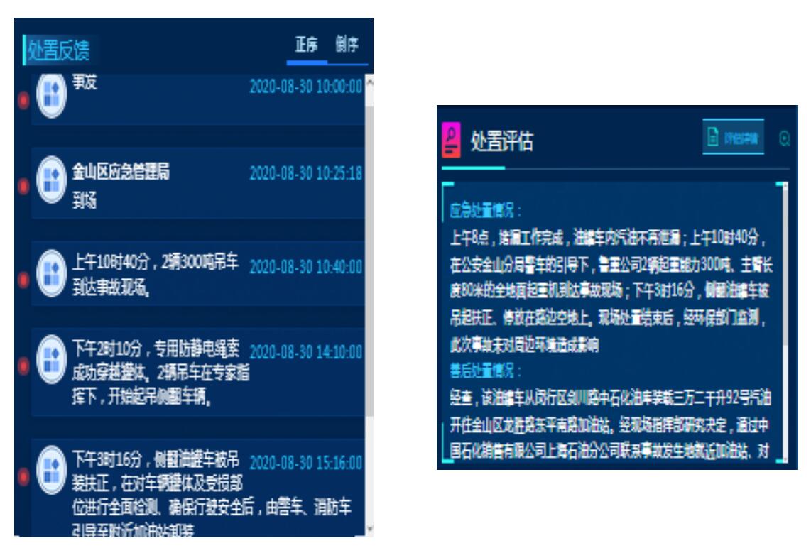 突發事件的全過程處置環節,將以時間軸的形式在處置反饋模塊,按順序依次記錄展現,還原事件的處置過程。同時,整合事件所有信息生成相應案例,自動生成處置評估報告,完成閉環處置,為后期預案優化、案例情景再現、案例關聯分析等,提供同類型參考。