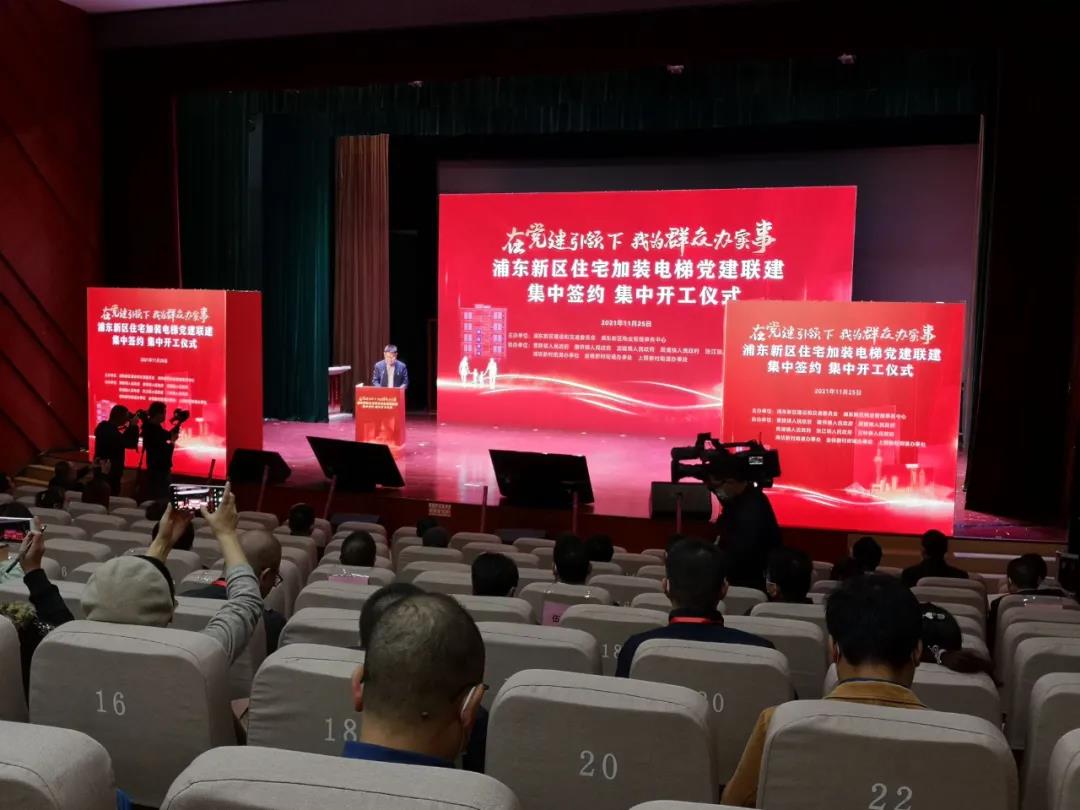 近日,浦東新區“在黨建引領下,我為群眾辦實事”住宅加裝電梯黨建聯建、集中簽約、集中開工儀式舉行。當天,曹路鎮、濰坊新村街道、金楊新村街道、周浦鎮、康橋鎮、泥城鎮、上鋼新村街道、張江鎮、三林鎮9個街鎮加梯集中簽約130臺,集中開工40臺。