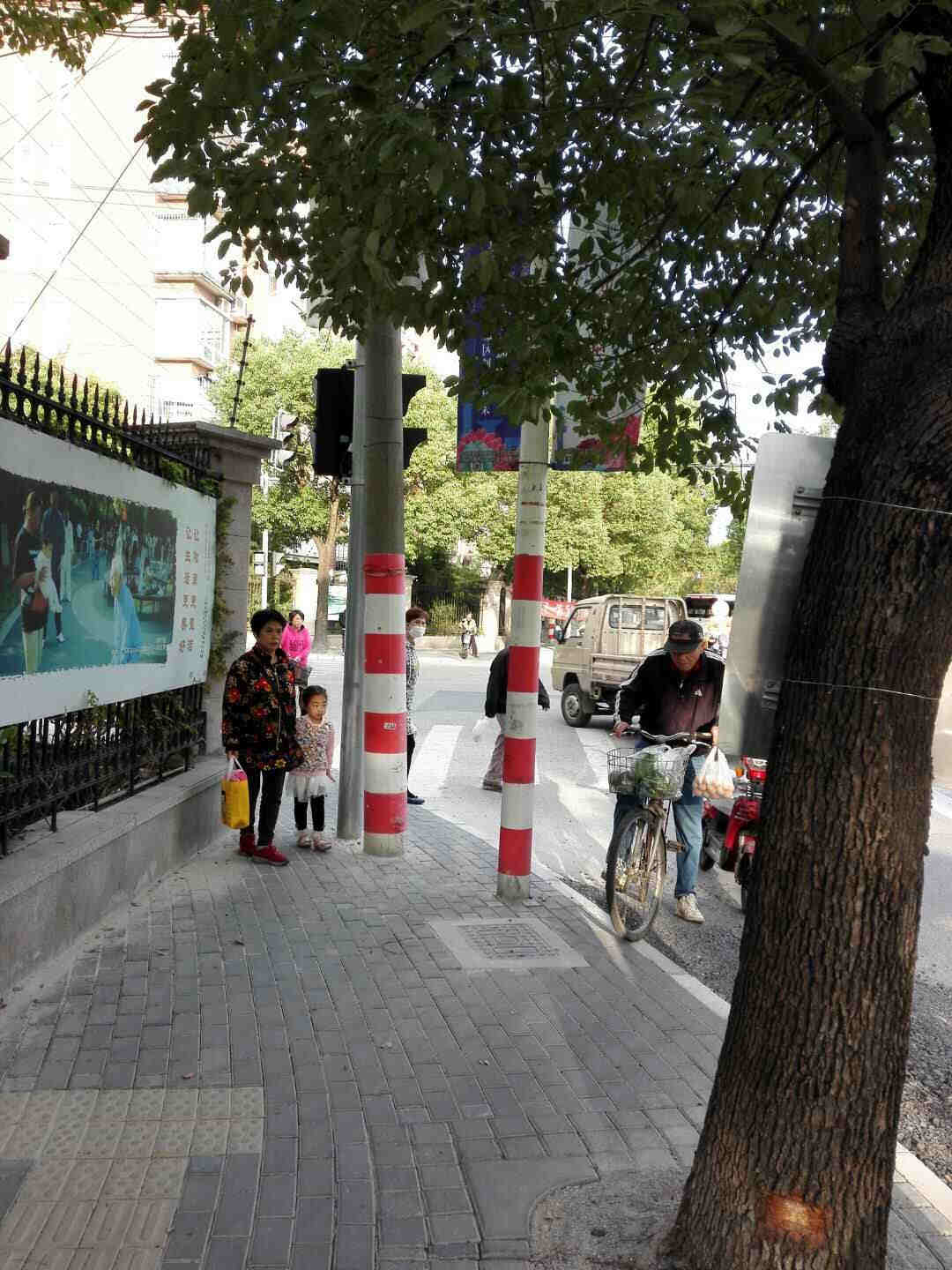 淞發路淞良路西北角的路口,由于歷史原因,布設了路燈、電線、紅綠燈三個桿體,僅1.9米寬的人行道口被擠插成只留兩個各約0.9米的狹窄通道。每當行人路過,只可一人勉強而行,若遇輪椅或童車欲過,極易被逼至車行道,存在安全隱患。胡老先生借著淞發路大修機遇,通過社區通“人民信箱”反映了這一問題,建議將三根桿體整改遷移,還路于民。