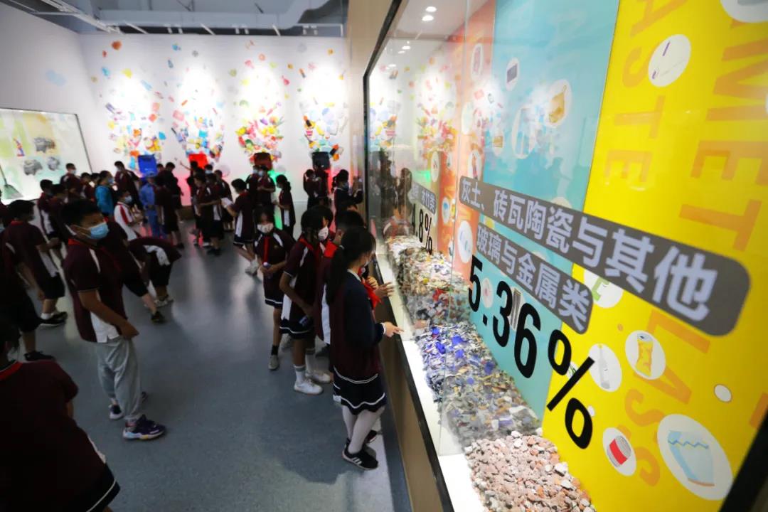 這家獲評“上海市示范性科普場館”的科普館,依托現有垃圾處理設施,定期在節假日向市民開放,開展垃圾分類體驗之旅。在寬闊明亮的科普展廳,桌椅等家具幾乎都是由玻璃、瓶罐、廢紙等廢棄物回收再造的,令人耳目一新。