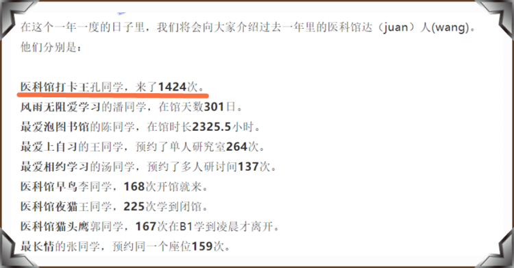 1424次!這是復旦大學2017級臨床醫學專業(五年制)孔怡德過去一年去復旦大學圖書館醫科館(以下簡稱“醫科館”)的次數,平均每天去醫科館打卡3.9次!