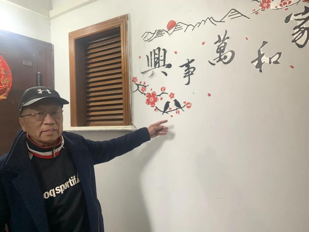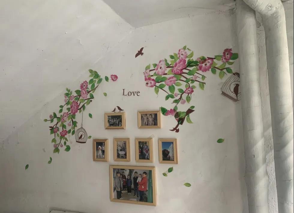 走進2號樓,右手邊是小桌椅,墻上貼著粉紅的花朵貼紙,還掛著幾副照片,記錄著居民們生活點滴;而左手邊則是一張張孩子們的畫作,有七彩的龍,可愛的花,圓滾滾的小烏龜……姬志東說,“五樓有戶人家是學美工的,主動在樓道里貼了不少自己的作品,三樓有戶人家也很積極,茶幾桌椅就是他們淘來的。居民們如果提著重物進樓累了,可以把東西放在桌椅上歇一歇,其他人沒事的時候,也可以在這兒坐坐,喝喝茶!