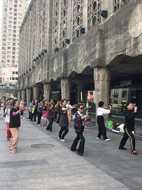慶源居民區嘉興路279號到337號的房屋年代久遠、結構老化,居民活動空間狹小。盡管如此,慶源的居民還是自發成立了以一個拳操、腰鼓為主的文藝團隊。最初規模不大,只有大約20人,為了不影響街坊鄰居,每次活動、排練、鍛煉時,大家都相互都提醒,將功放的音量盡量調輕。