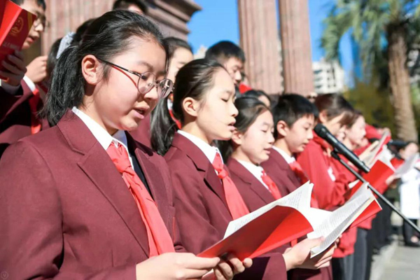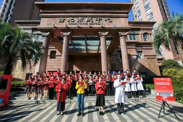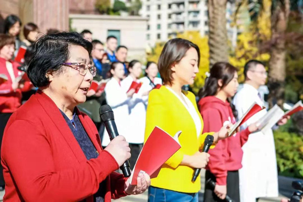 許道倩是一名退休老黨員,在虹橋社區生活了20余年。今天,她帶著朗誦團的姐妹們一起加入到群誦隊伍中來,格外開心!拔覀冞\用自己的所長,來宣傳我們國家的根本大法,同時也發揮了一名老黨員的余熱,我覺得非常自豪!痹谒磥,虹橋作為一個國際社區,有50多個國家和地區的外籍友人生活在此,通過朗誦這種新穎、活潑的形式,也能更好地讓外籍友人了解《中華人民共和國憲法》。(來源:上海長寧)