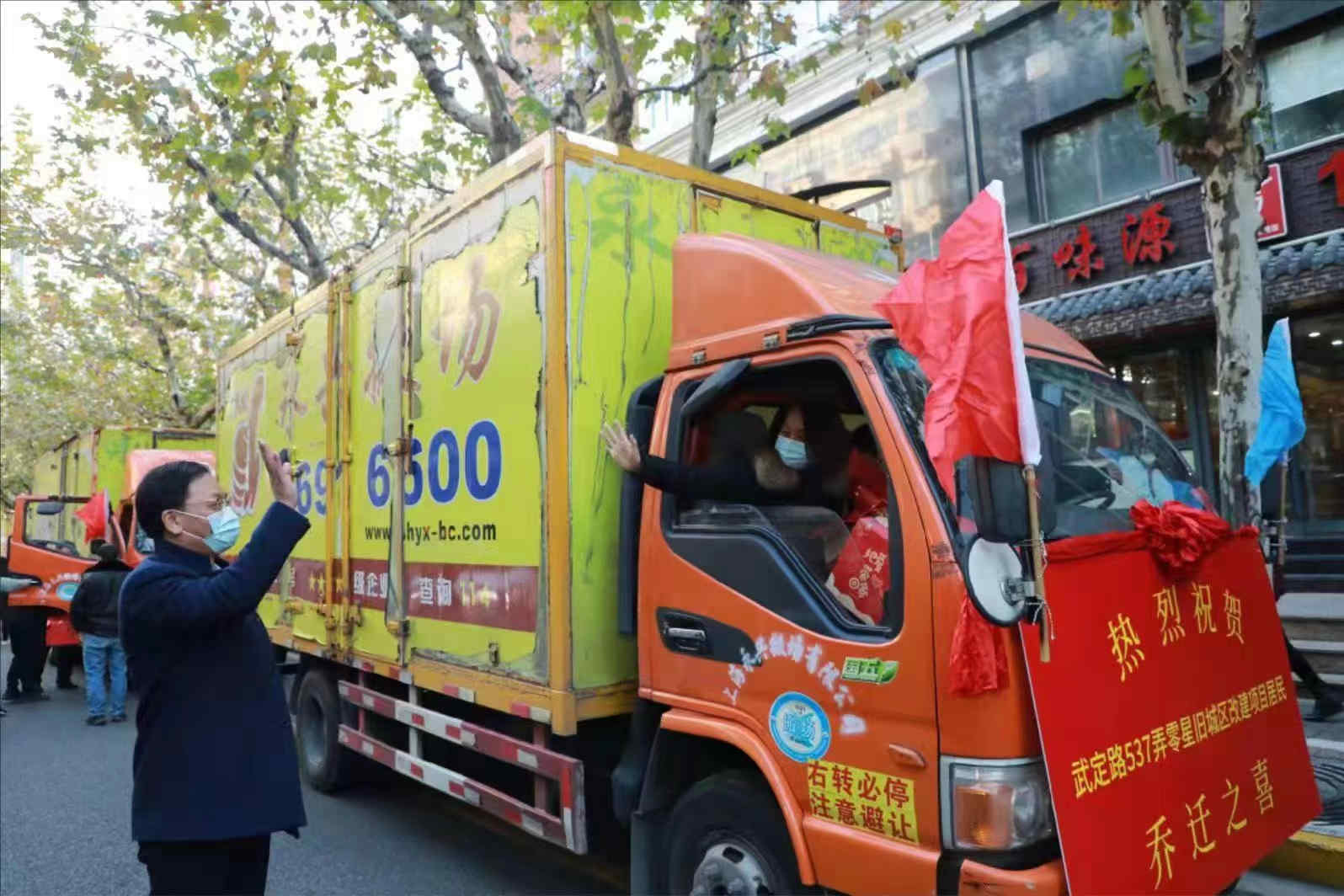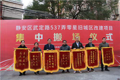 搬場現場,居民代表送出了11面錦旗,分別贈予靜安區區委、區政府,江寧路街道黨工委、辦事處,靜安區建管委、區舊改總辦,靜安區房管局,人大代表梁光璧、朱宇翔,江寧路派出所,江寧路街道征收事務所,眾樂里居委會,江寧路街道老書記工作室,靜安區第一房屋征收事務所。這也反映出舊改地塊生效是群策群力的結果,圓滿結局來之不易。