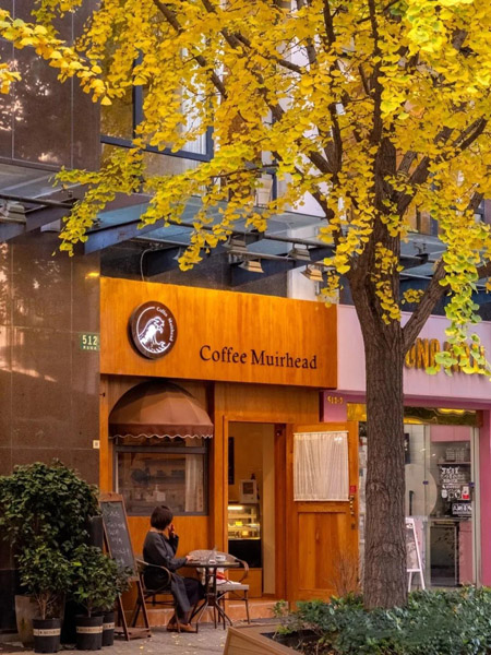 咖啡店門前有兩棵茂盛的銀杏樹,因此,一到銀杏季,店外的露臺座位變得格外槍手。點上一杯咖啡坐在室外,暖暖的陽光灑在身上,周邊被金燦燦的銀杏包圍,非常有氛圍。