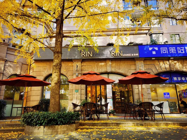 RIN Coffee靠近黃金城道伊犁南路路口,也是黃金城道銀杏樹最繁茂的區域?Х鹊暝谑彝庠O有露天座位,座位四周被金燦燦的銀杏包圍,滿地銀杏葉就像鋪了一層金黃色的地毯,美極了!值得一提的是咖啡店門前兩排銀杏,還可以拍出銀杏隧道的感覺。