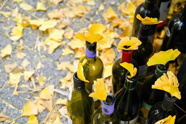 COSTA與鄰居EAZZY SPACE門口的露天休憩區也強烈推薦,門前整一片地上鋪滿黃金葉子,還有各種紅酒瓶可以做道具,就連椅子也有好幾種款式供擺造型。
