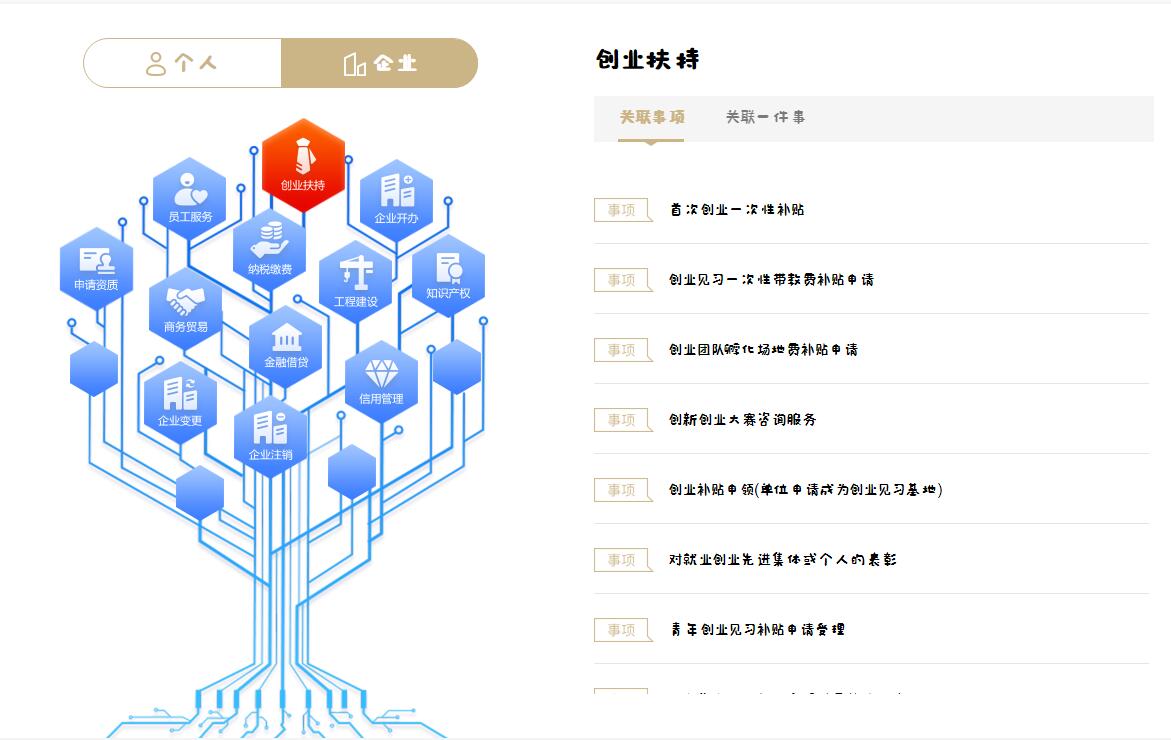 今年4月,針對初創企業普遍存在的共性需求問題,黃浦區緊抓“放管服”改革這個牛鼻子,在“高效辦成一件事”的基礎上,上線了政務服務集成導航兩棵“生命樹”,向企業群眾直觀體現全生命周期可能需辦理的政務服務事項。