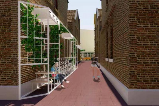 如通過平面布局調整、家具的優化設計來改善室內外的空間功能布局;通過綠化、晾曬、細部構件調整等手段提高立面的豐富性;賦予樓梯間及走廊新的功能,增加功能復合的可能性;增加扶手,調整梯段,優化樓梯間的空間設計,提高安全性和舒適性;增加停車位、綠化、座椅等,提高公共空間的功能性,使得巷弄不只有通行功能;增加屋頂綠化,優化第五立面、陽臺及曬臺設計,美化環境;增設半空中的活動空間,在不影響里弄街區基本通行的前提下,增加居民可用的交往空間;甚至可以置換里弄的居住功能,通過其他功能的介入,帶動社區活力。
