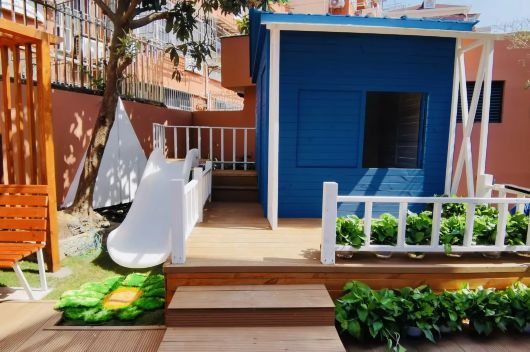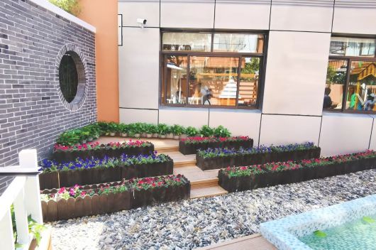 除了提供就餐服務外,室外還有一個營養花園,設有營養歡樂屋、滑梯、休閑椅、蔬菜種植區等。