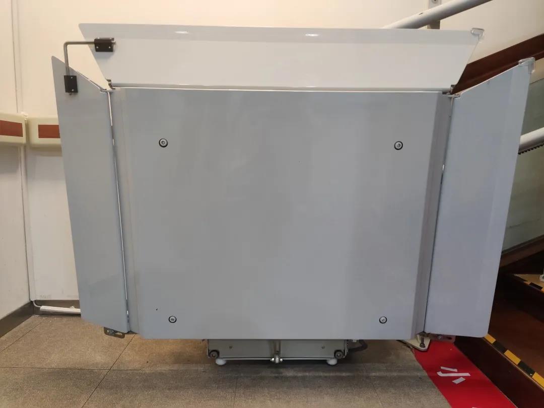 據了解,這臺“爬樓機”全名曲線斜掛輪椅升降臺,最大可承重225kg,按照扶手上的導軌路線運行,無需使用時還可折疊放置,完全不影響正?臻g的使用。