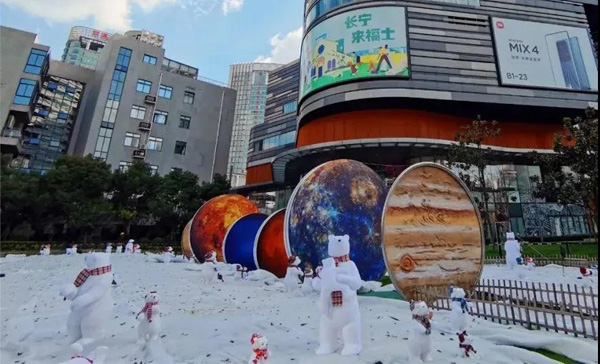 長寧來福士廣場的草坪變身“冰雪天地”,可美了!